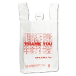 “Thank You“ design on white bag. Ideal for use at the checkout counter. Made out of HDPE film. 500 Bags per Case 12 x 7 x 13